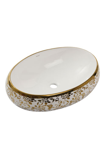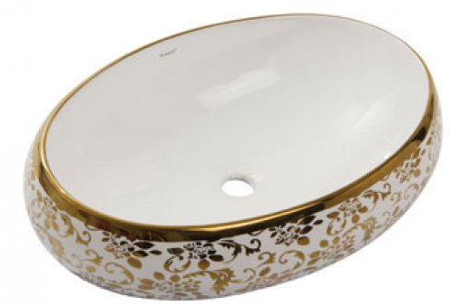 Dışı Altın Desenli - İçi Beyaz Oval Lavabo
